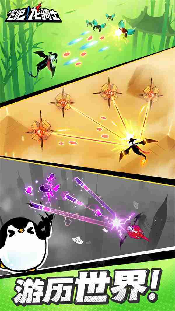 《飞吧龙骑士》是一款集合了飞行弹幕射击、、、Roguelike要素和挂机养成的休闲手游,,极具创意的吞食子弹反击玩法,,,,突破传统飞行射击的刻板限制,,,,带来了独特的爽快清屏体验。。