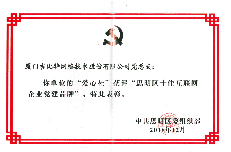 经初审评选、、、、网络评选和专家评审等环节,,,,"厦门yaxin111网络技术股份有限公司党总支-爱心社" 从全区28个参评党建品牌中脱颖而出,,获评"思明区十佳互联网企业党建品牌"。。。